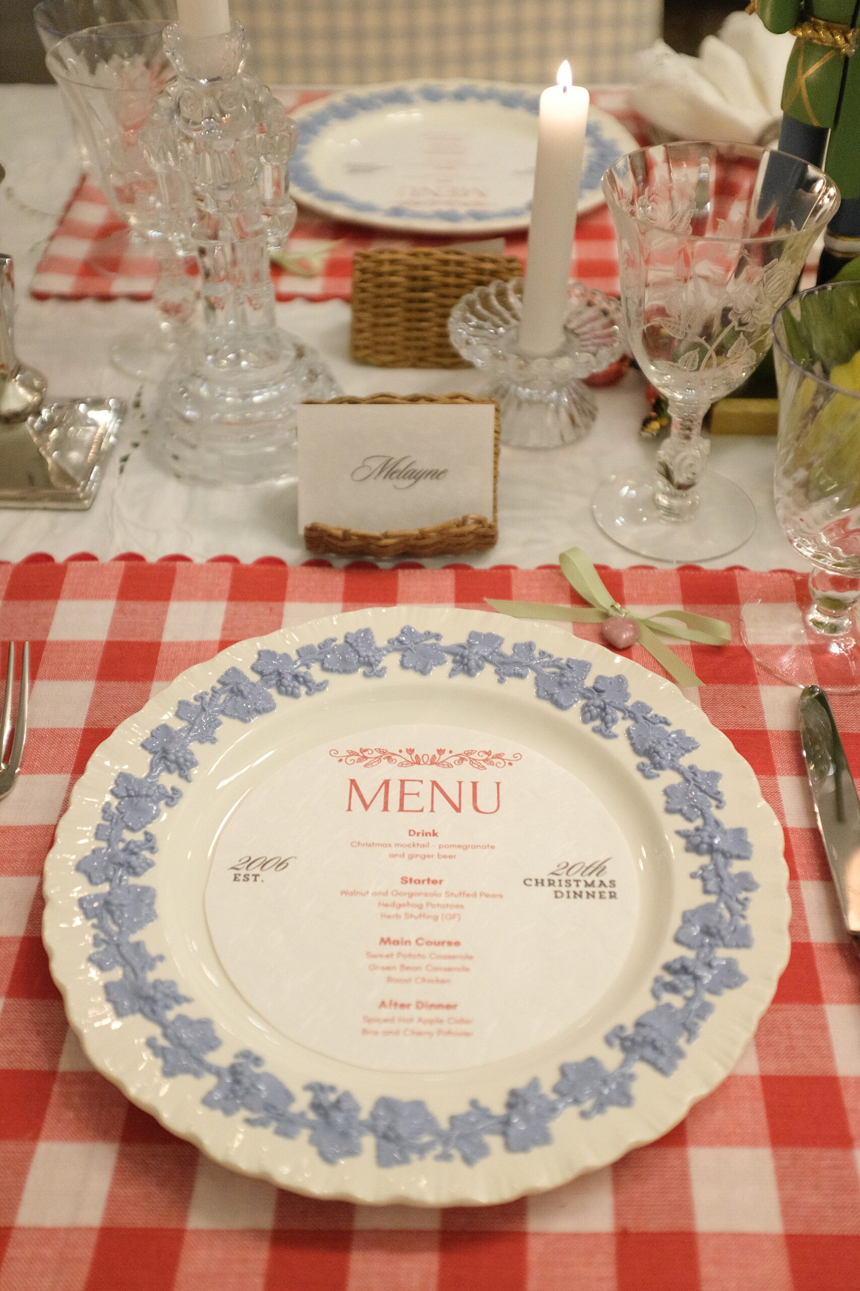 I noticed that the placee setting looked a little boring so I quickly jumped on Canva and created a menu and make sure it was the perfect size for me to cut out into a circle and place on the plate!