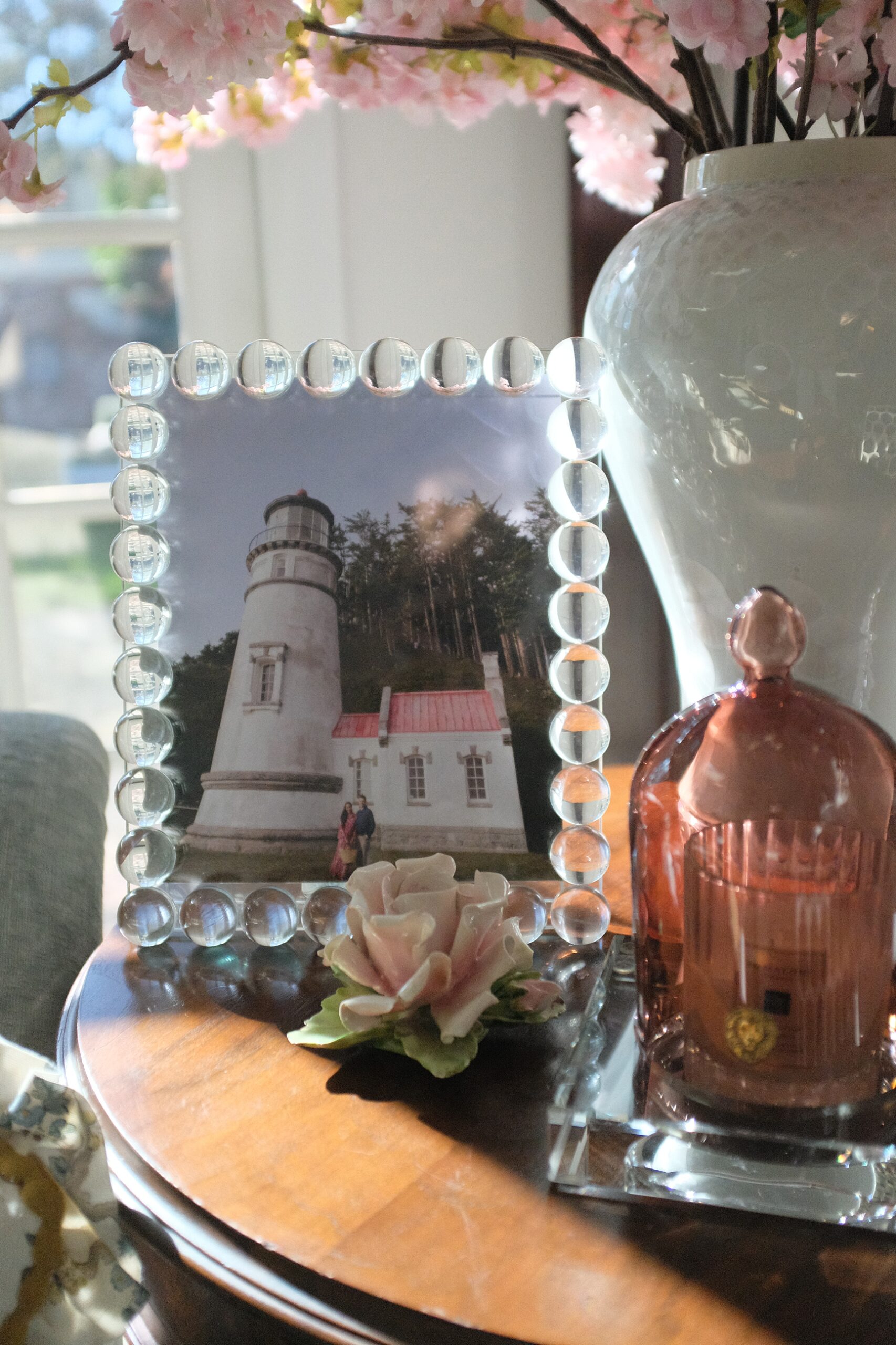 If you want neutral seasonal decor, try these white cherry blossoms and use Alice Lane Home promo code Diana15 for 15% off. The faux floral texture will bring life to your space and still say spring without the distraction of color. This opal shell jar is stunning and it’s neutral with some dimension with the paint finish that shimmers – it will go with any seasonal decor. Sometimes I place faux magnolia in it!