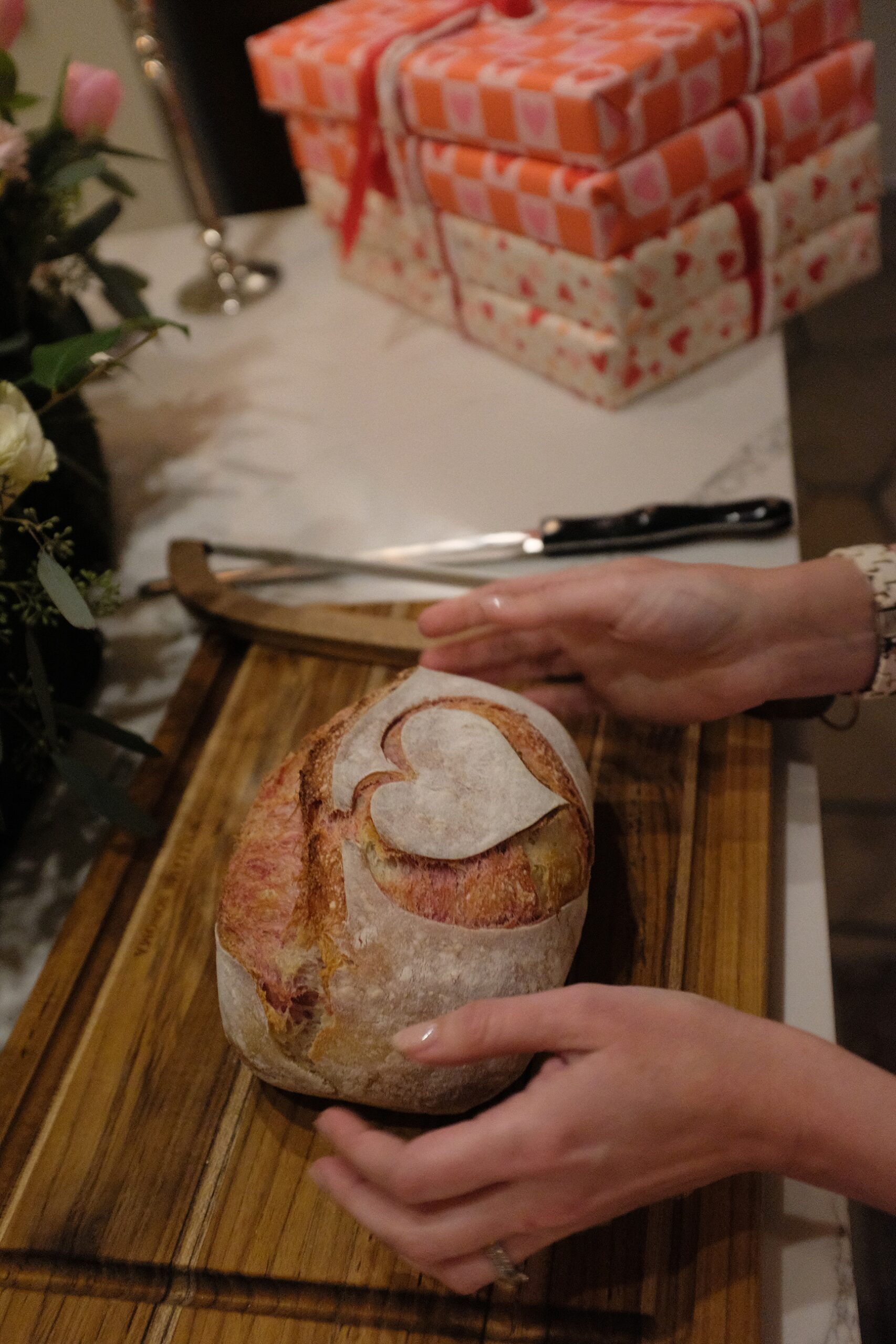 Brenna made sourdough bread again it’s so delicious! It had pink swirl in it, she used a dragonfruit coloring it was AMAZING!!!! It went with the Trader Joe’s chicken gnocchi soup I make which is so easy mixing 3 ready made ingredients and great to just turn on when friends arrive and it’s ready to serve in 10 minutes! Serve it in a heart bowl and you’re ready for Galentine’s Day!