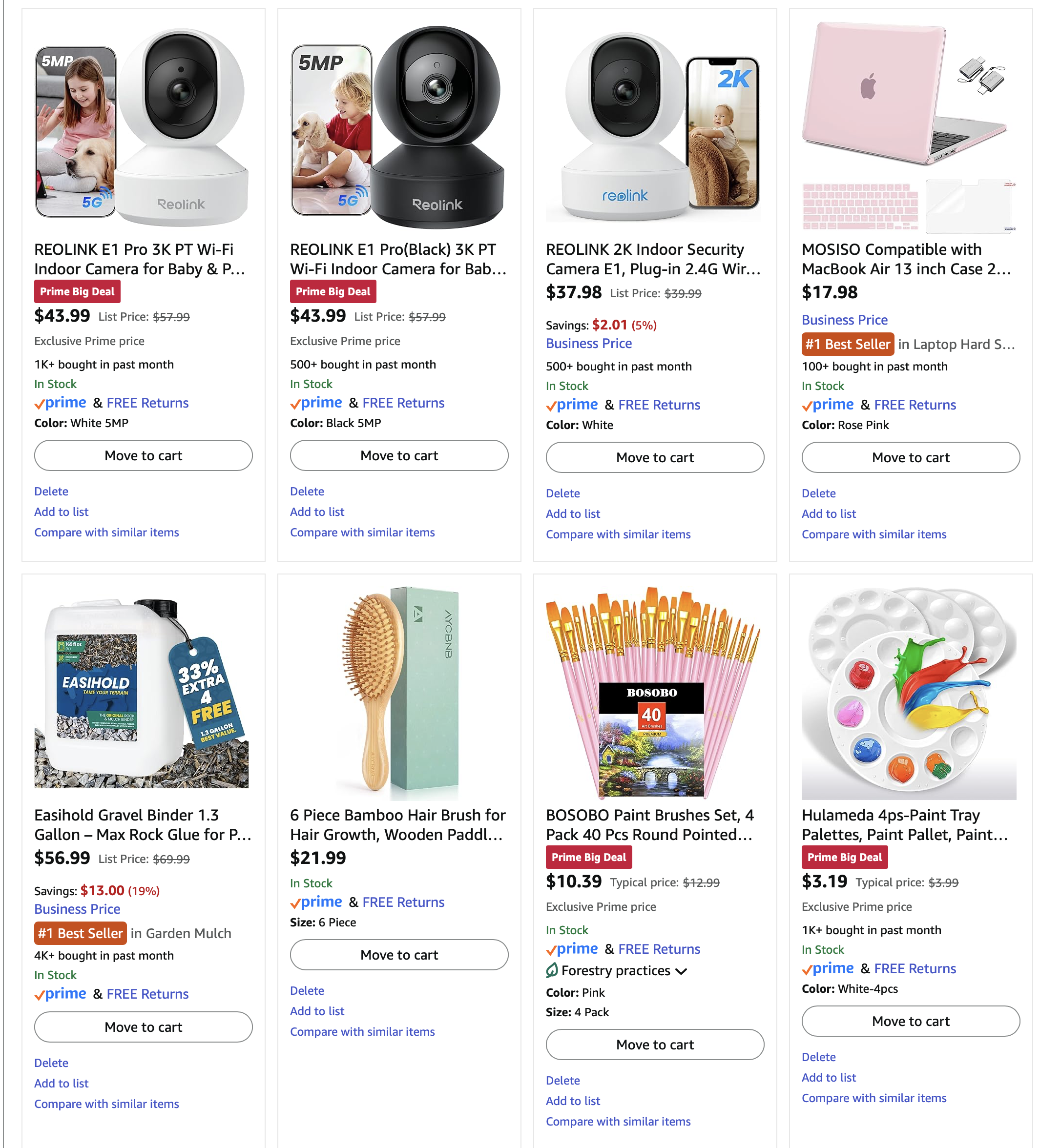 My biggest tip is to head to your Amazon cart by clicking here and you can take a look and see what items you have saved in there at the very bottom. You can see if there’s a red label that says it is on sale and the new price.