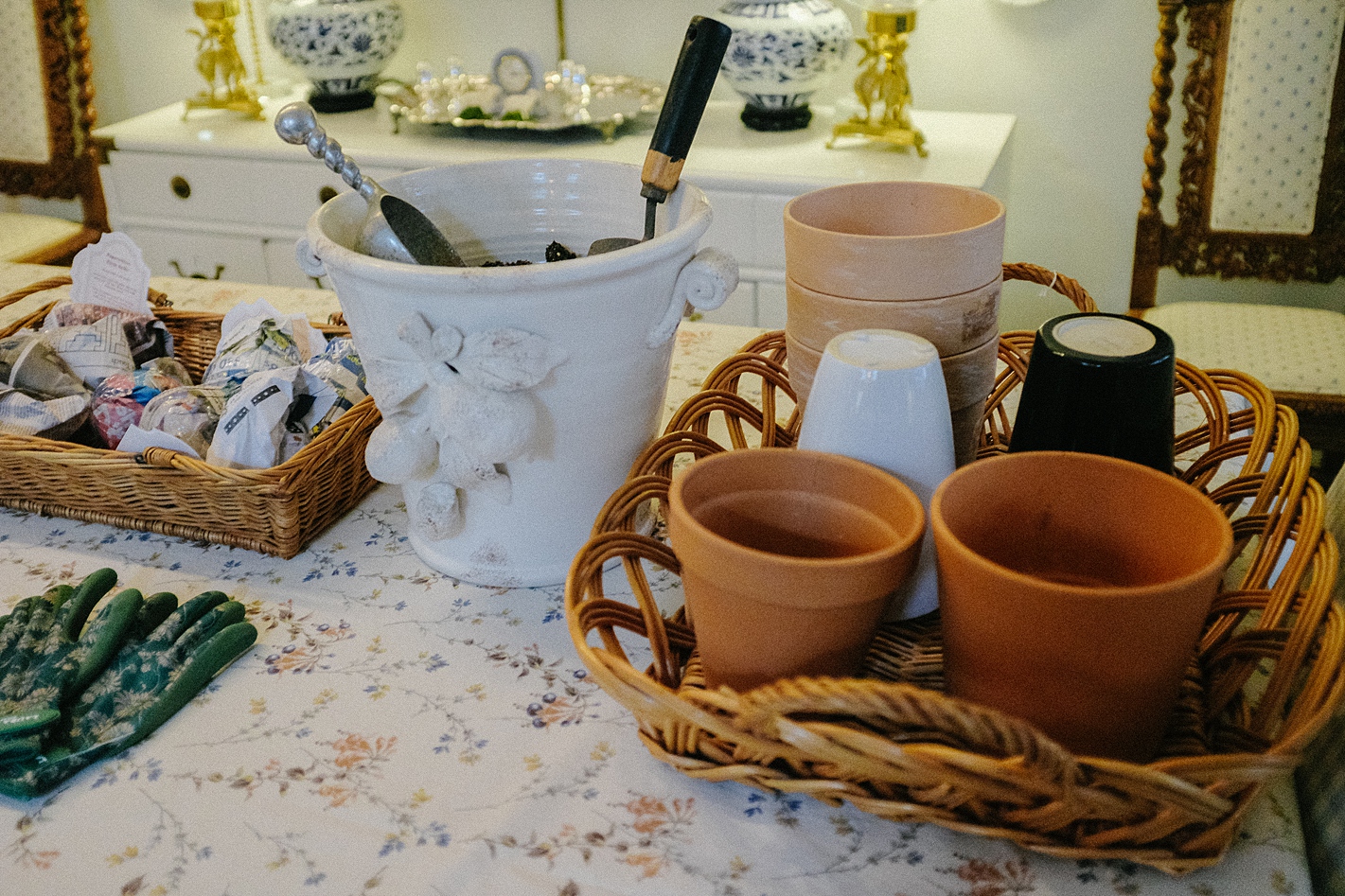 Because this came together quickly, I told my friends to BYOP: Bring Your Own Planter. I did have some extra because well, I’m a gardener and I also have a habit of keeping too much so if no one had a planter I had one to offer! The mix of shapes and styles actually made the table look more charming.