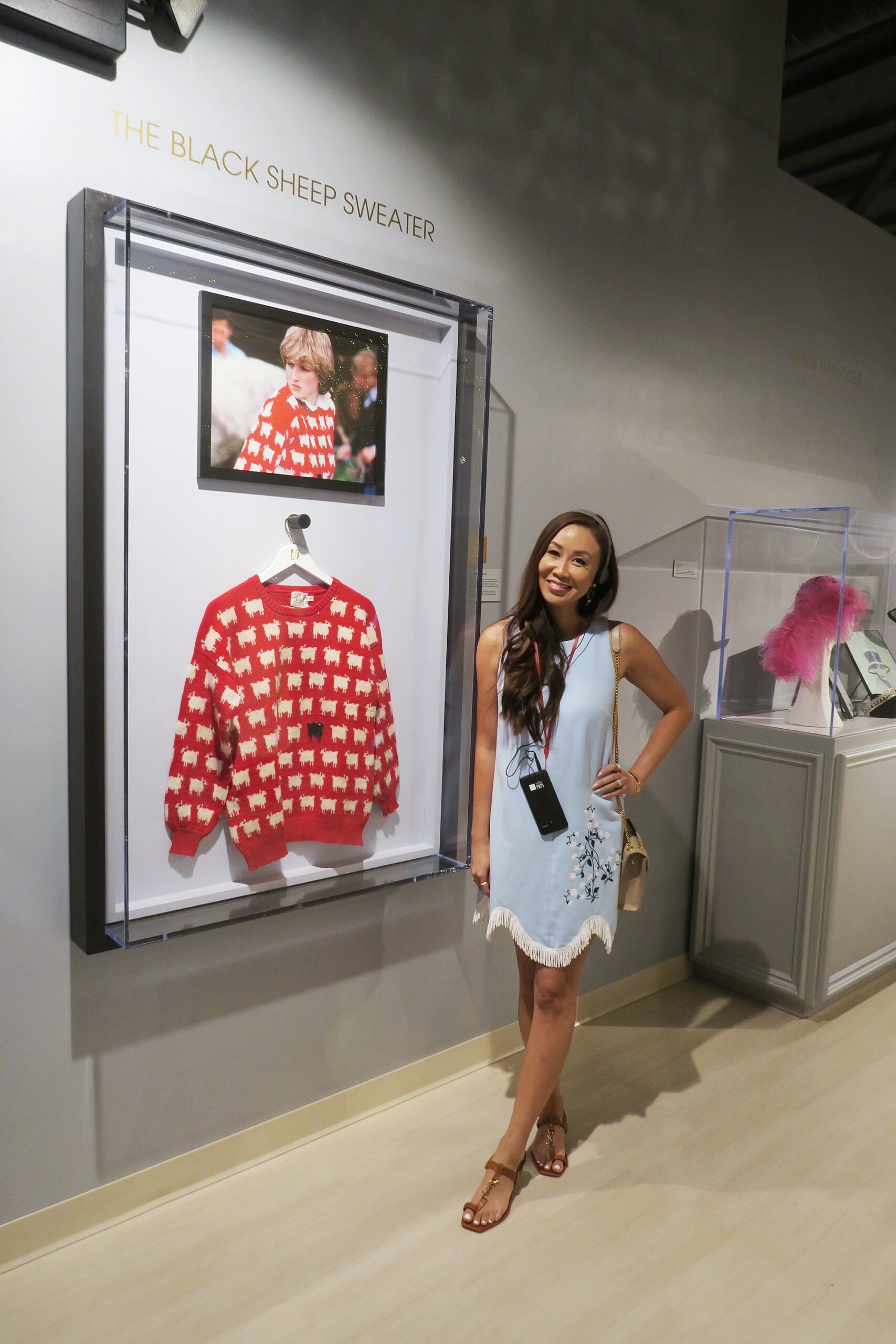 Diana exhibit in Las Vegas a review - Diana standing by the famous red sheep sweater by rowings blazers warm and wonderful